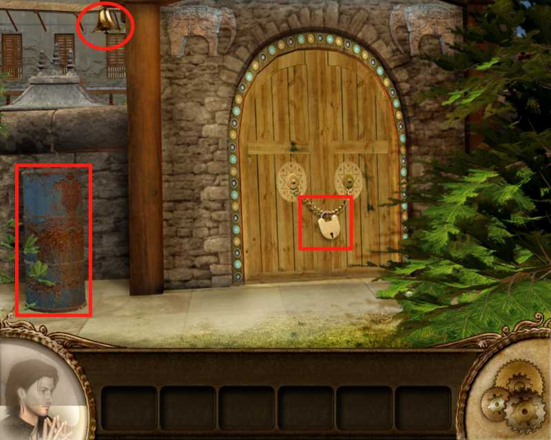- изучаем домик справа: выполняем задание по поиску предметов, получим еще один колокольчик