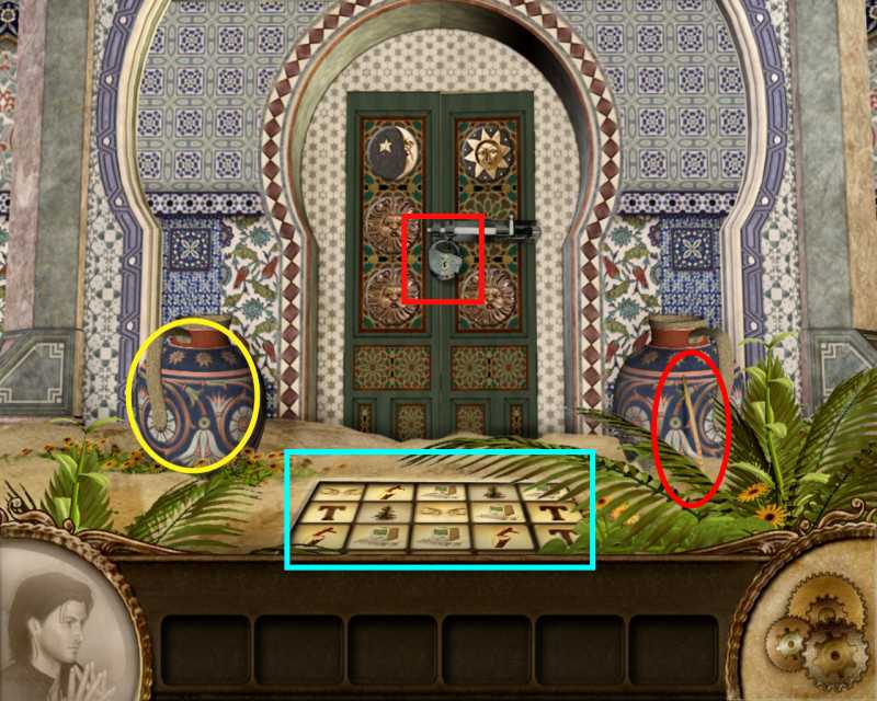 - фишку с солнцем ставим в нишу на двери: решаем головоломку-пятнашки