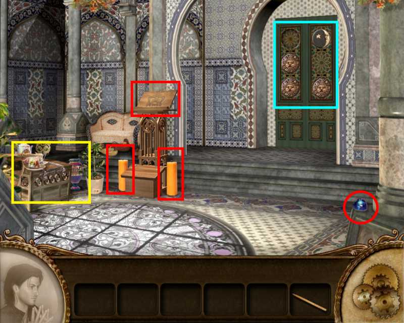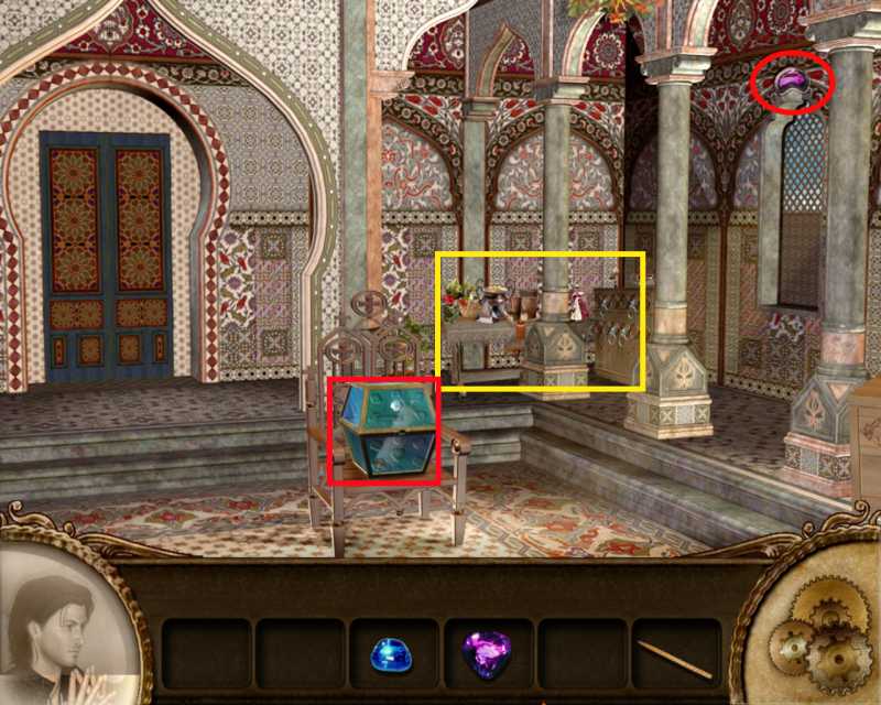 - применяем камни на сундук и решаем головоломку: нужно расставить камни в соответствующие отверстия. Крутить можно правой кнопкой мыши