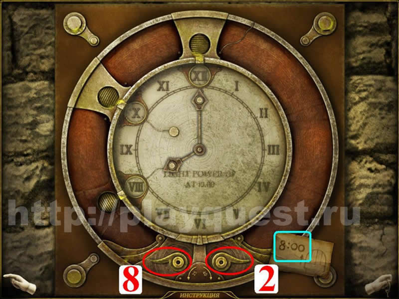 - решаем головоломку: устанавливаем нужное время, поворачивая ручки