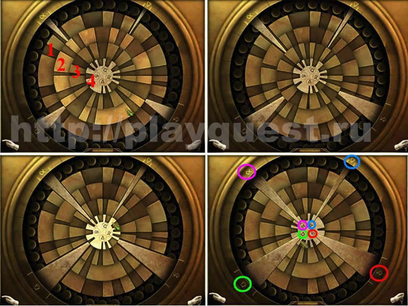 - проходим мини-игру: поворачиваем кольца, чтобы четыре шипа достигли центра