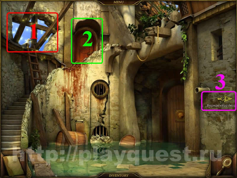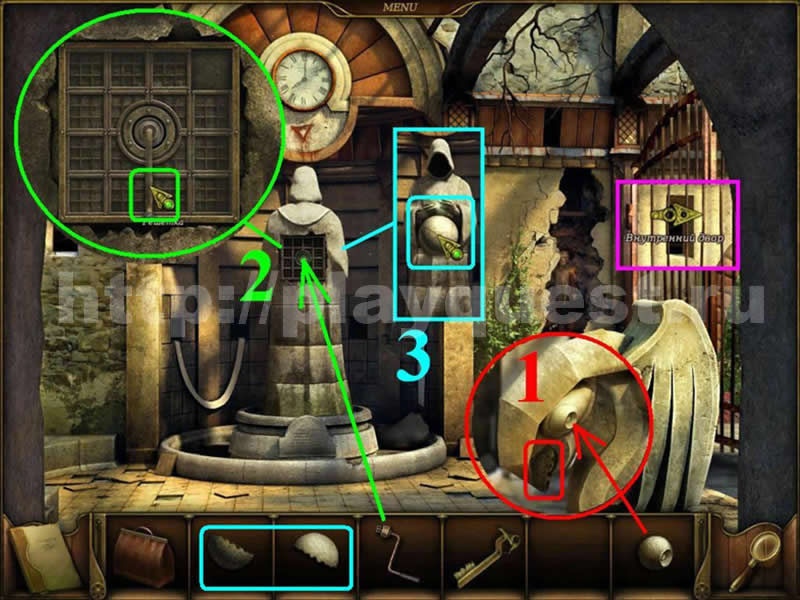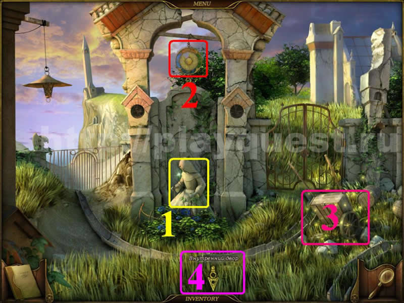 Двор1. проходим "Поиск предметов" в пустом фонтане