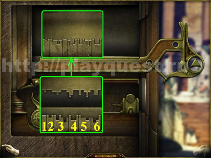 3. обновленную отмычку применяем на дверь домика прислуги - решаем головоломку с отмычкой