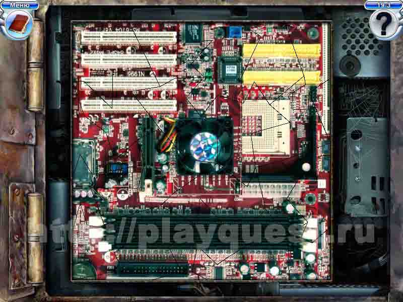 - в лаборатории убираем канистру и достаем из чемодана ноутбук - берем из шкафчика зарядку и выходим в кабинет - забираем со стола ключ и открываем им ящики шкафа, забираем аккумулятор - ноутбук кладем на стол - аккумулятор и зарядку подключаем к ноутбуку, выдвигаем CD-ROM - убираем коробку, берем диск, достаем диск и ставим его в дисковод