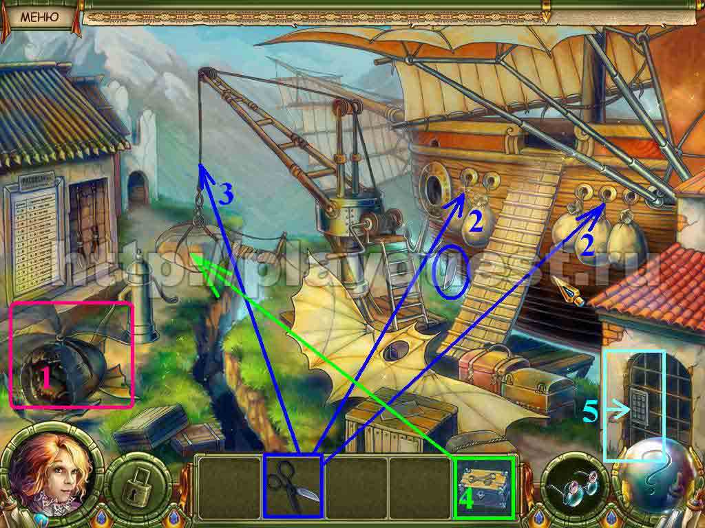 1. включаем пропеллер – находим последнюю часть ножниц (под якорем)