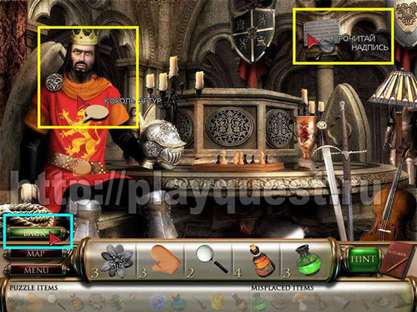 Изучаем надпись на табличке: в блокноте появляется подсказка про рыцарей