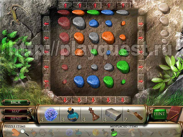 (двигаем камни, нажимая на стрелочки; сначала расставляем камни одного цвета – собранный столбец исчезает; расставляем следующий выбранный столбец)