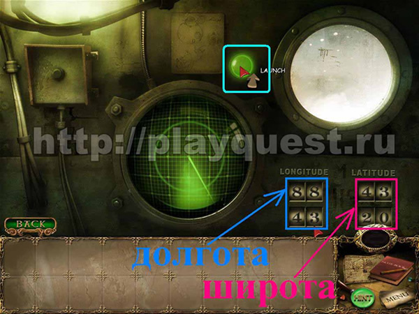 Сверяясь с записью в записной книжке, выставляем координаты: