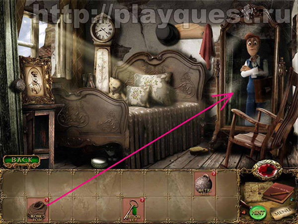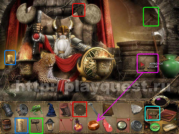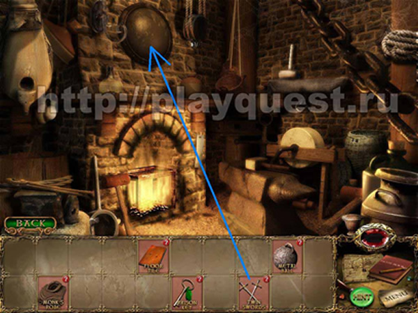 Входим в лавку кузнеца: помещаем сдвоенные мечи на щит (над камином) – получаем часть драгоценного камня