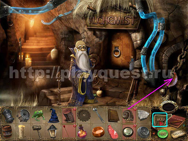 После прохождения мини-игры в открывшейся нише берем алхимическую миску