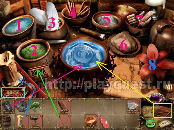 Заглядываем в записную книжку, чтобы проверить ингредиенты для топлива и порядок, в котором их необходимо помещать в миску