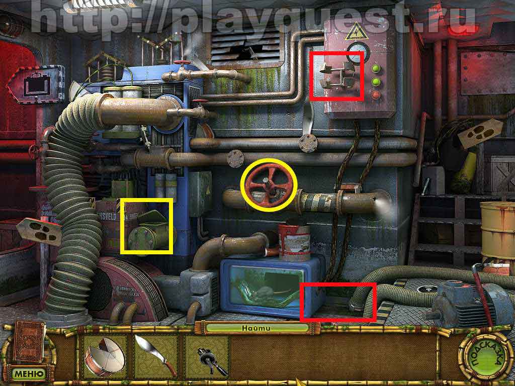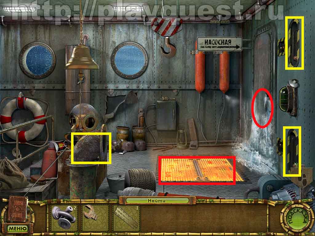 - изучаем насосное отделение: ставим лампу, дергаем рубильник