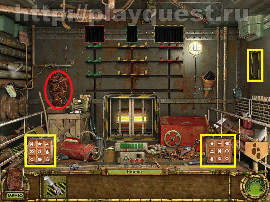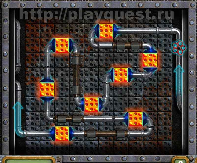 - изучаем решетку в полу: гаечным ключом отвинчиваем все 4 болта. Трубы применяем на горячие плиты: решаем головоломку. Нужно расставить трубы так, чтобы газ проходил через горячие плитки.