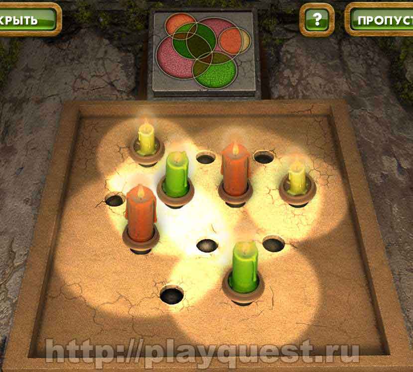 - изучаем алтарь: кладем на постамент табличку со схемой, а в отверстия ставим свечи. Расставляем свечи в соответствии со схемой