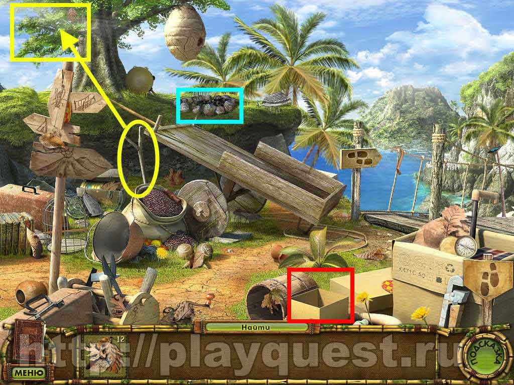 - теперь применяем линзу на листья. Это мини-игра: нужно сфокусировать линзу на листьях. сделать это просто: перемещаем линзу так, чтобы свет фокусировался в виде маленькой точки на листьях. Когда пойдет дым - удерживаем линзу в таком положении.