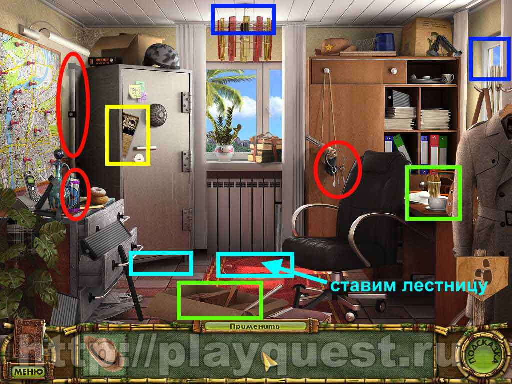 - изучаем сейф: вытаскиваем досье на главаря банды. Видимо в сейфе спрятана важная информация о нем. Нужно его открыть