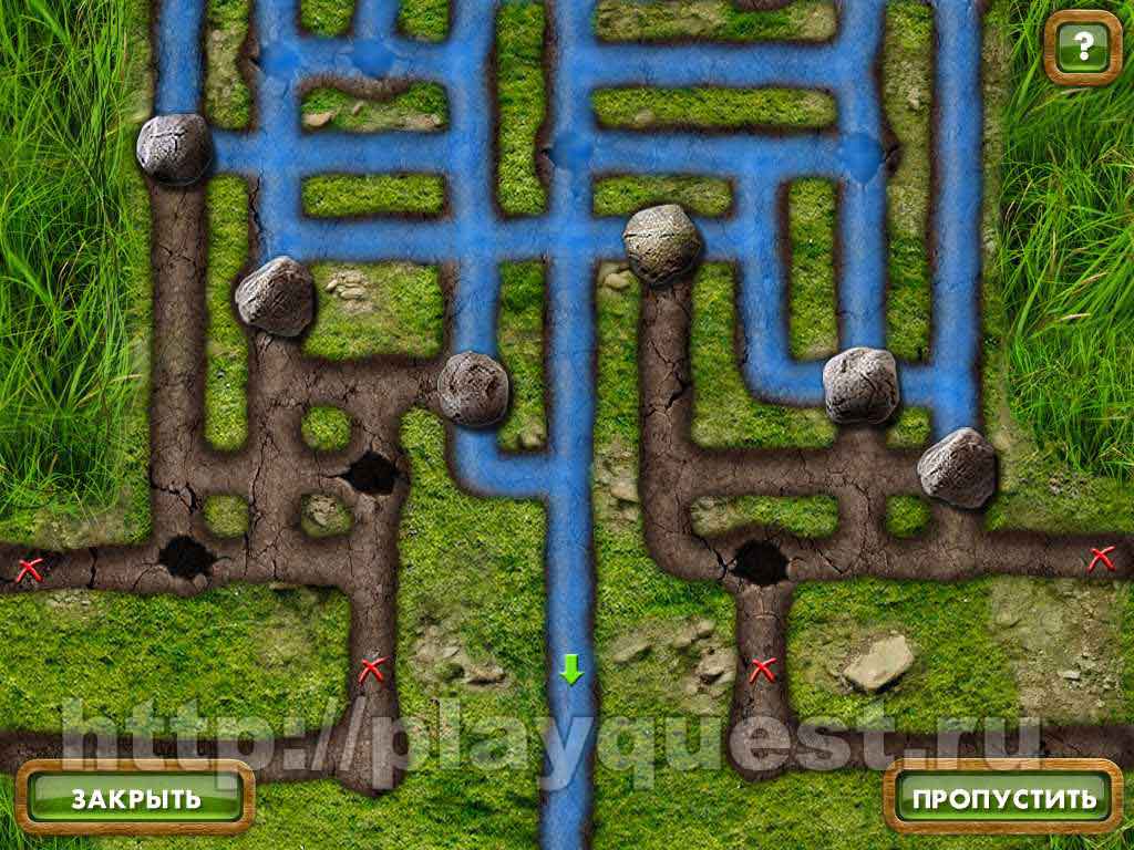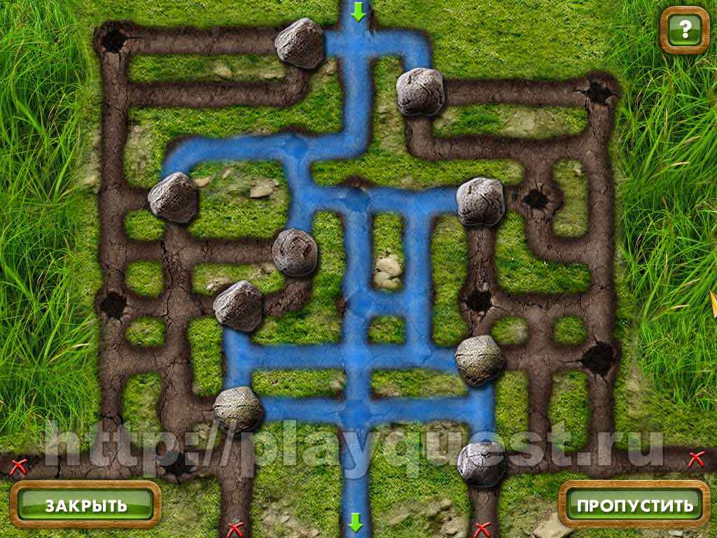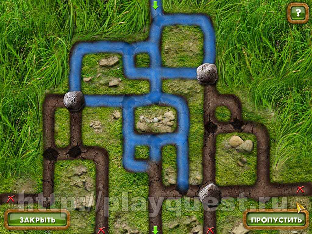 - теперь нужно его как-то охладить: пытаемся убрать камень над валуном. Это мини-игра, нам нужно закрыть камнями отверстия так, чтобы ручей бежал только по центральной канавке