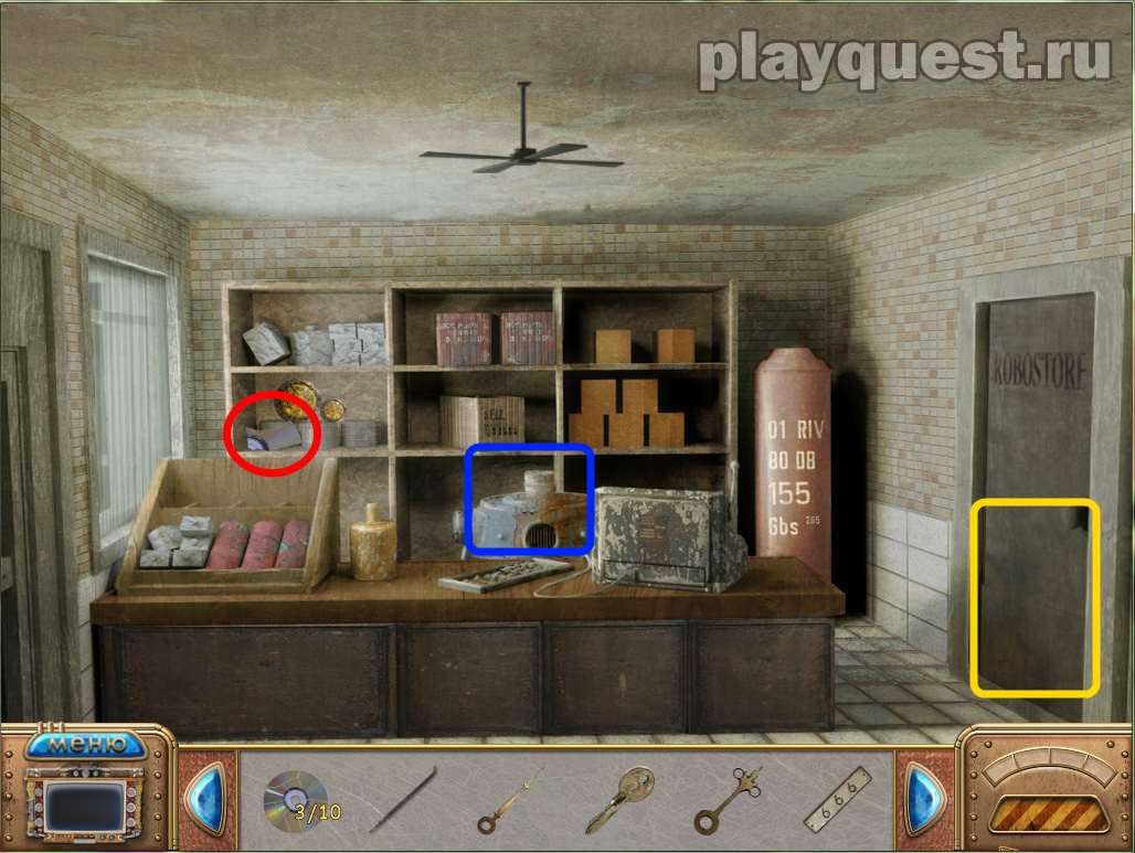2. Изучаем робота за прилавком: у него отсутствует голова, надо-бы ее найти..
