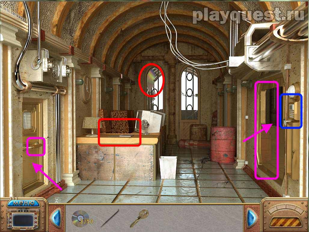 - забираем ключ третий, голову робота, часть диска (10) и читаем записку с кодом