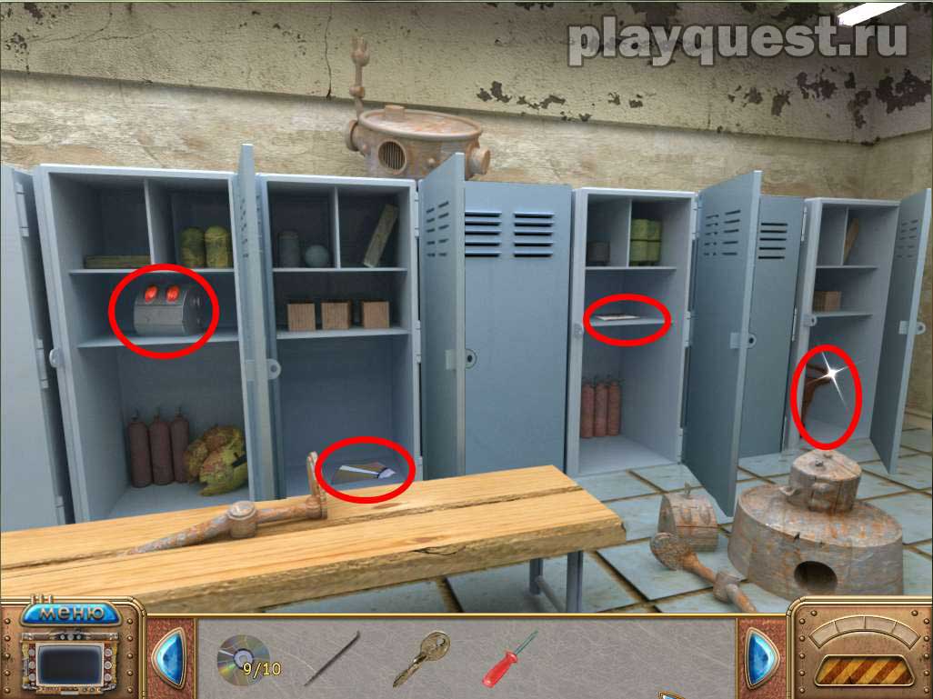 - открывам 1-й, 2-й, 4-й и 6-й шкафчики
