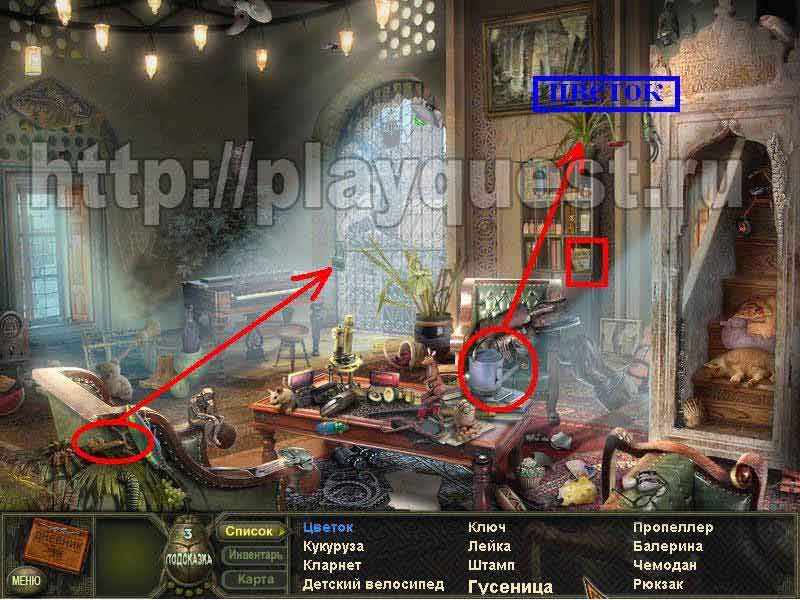 1. находим лейку – поливаем цветок, забираем цветок