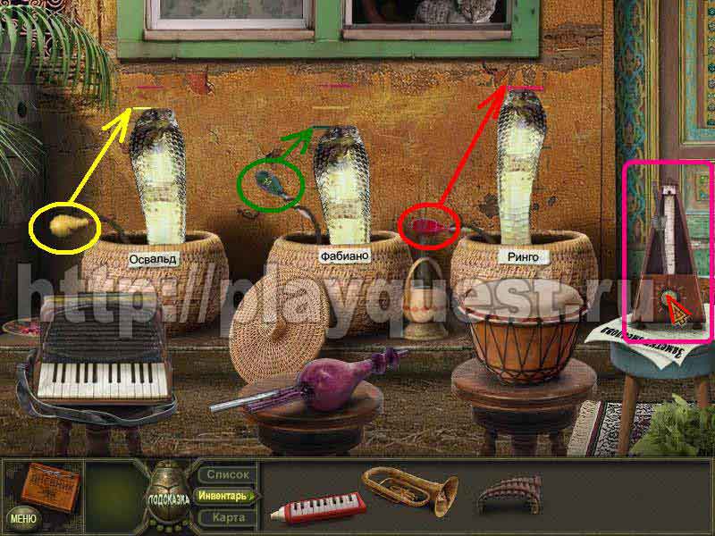 1. расставляем инструменты (если инструмент выбран верно, кобра начинает покачиваться)