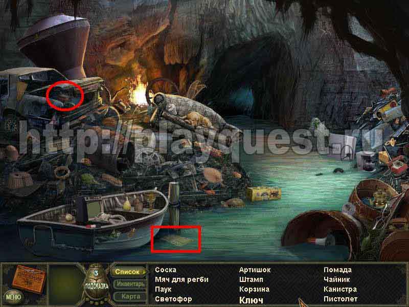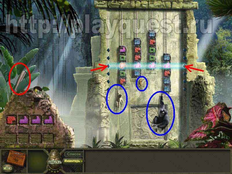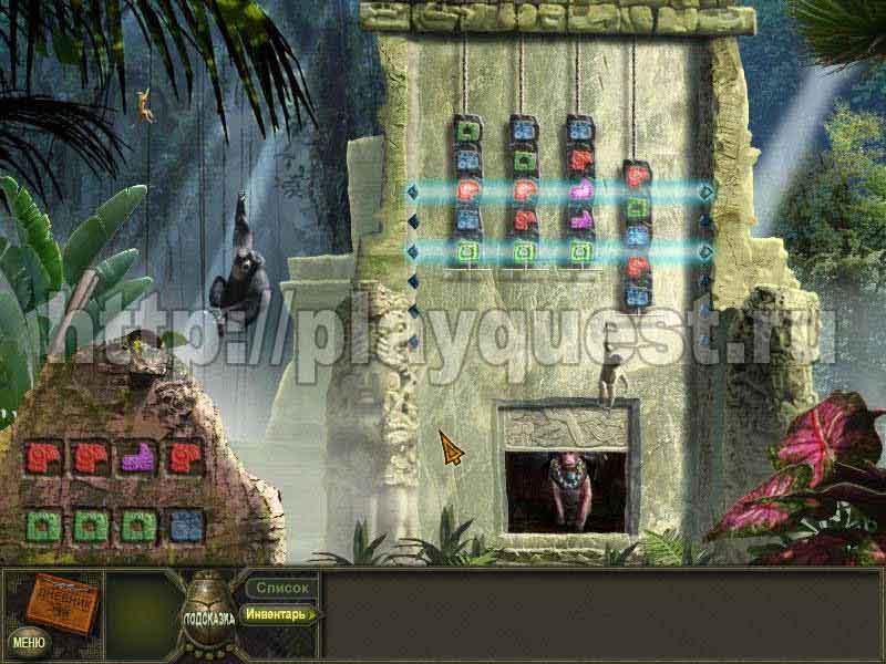 2. находим ключ (внизу, слева), применяем на каменного идола – получим медальон