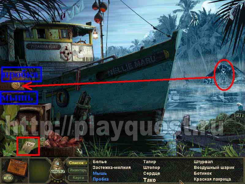 2. находим штопор – применяем на пробку. Получаем пробку и мышь