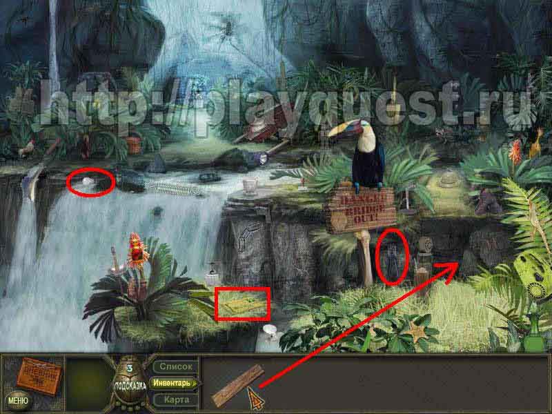 3. дощечку применяем на пропасть слева (делаем мостик) – откроется новая локация