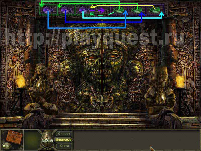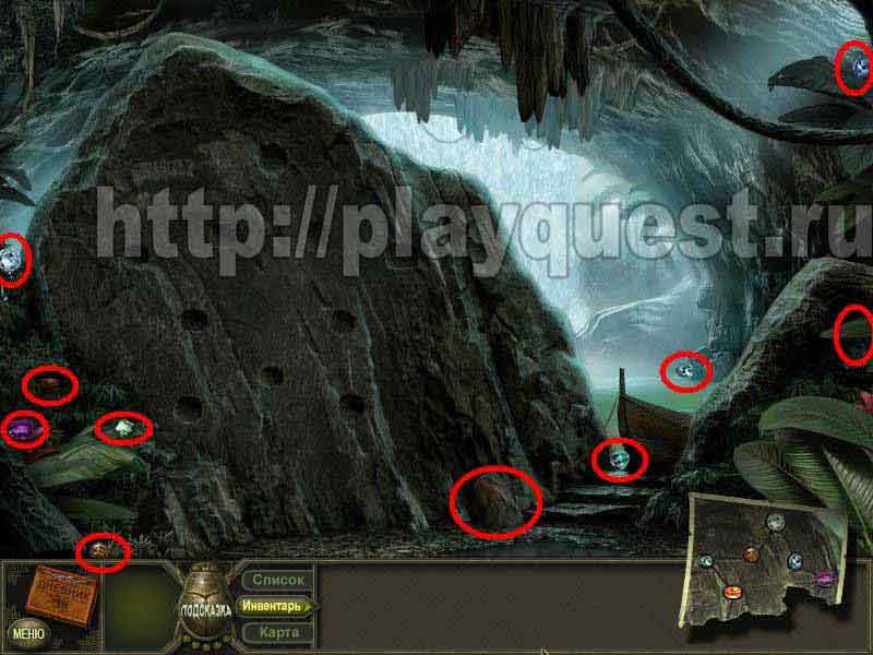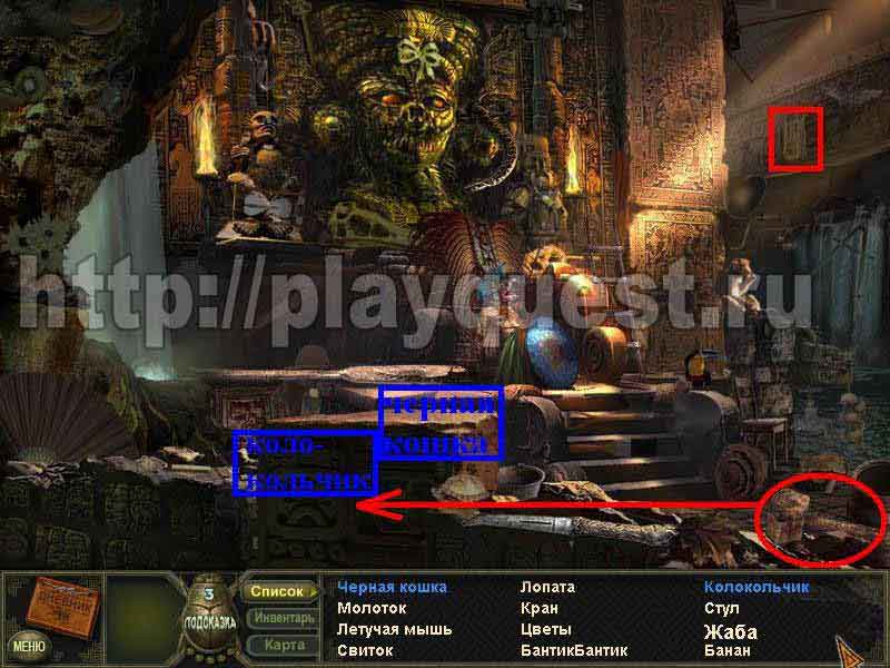 2. находим молоток, разбиваем им каменную плиту – за ней находим предметы, обозначенные в списке синим цветом