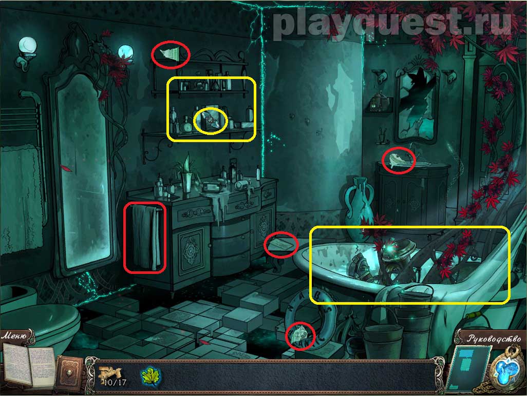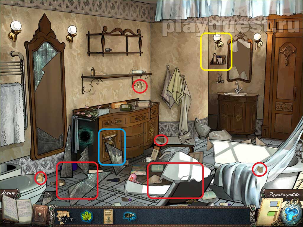 3. Осматриваем ванную: выполняем задание по поиску. Получим ингредиент - жука