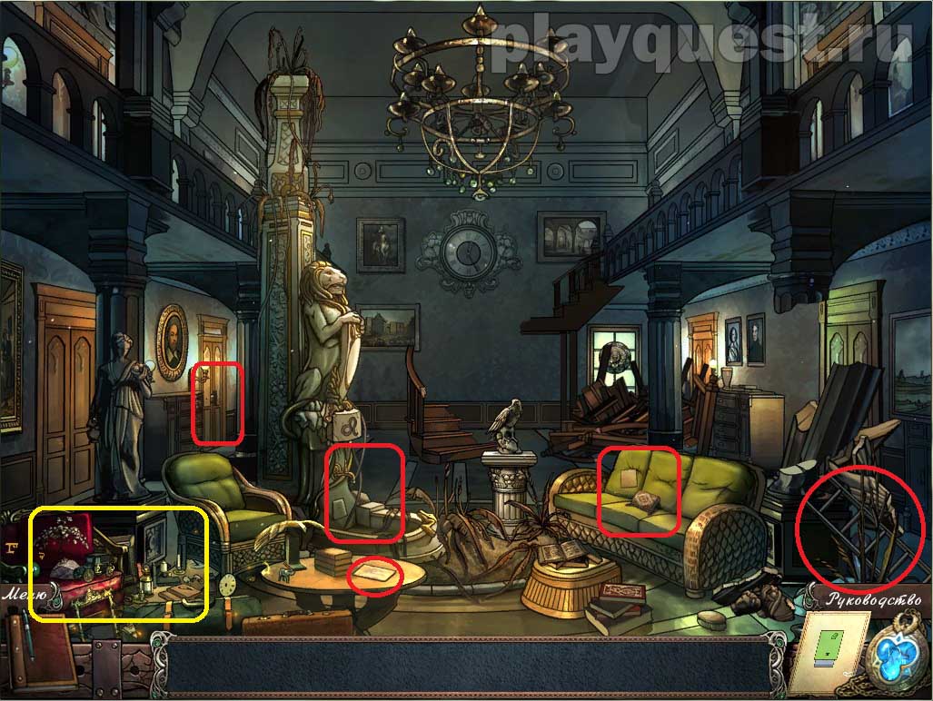 2. После проверяем кучу преметов возле левого кресла: выполняем задание по поиску. Получим коробок спичек.