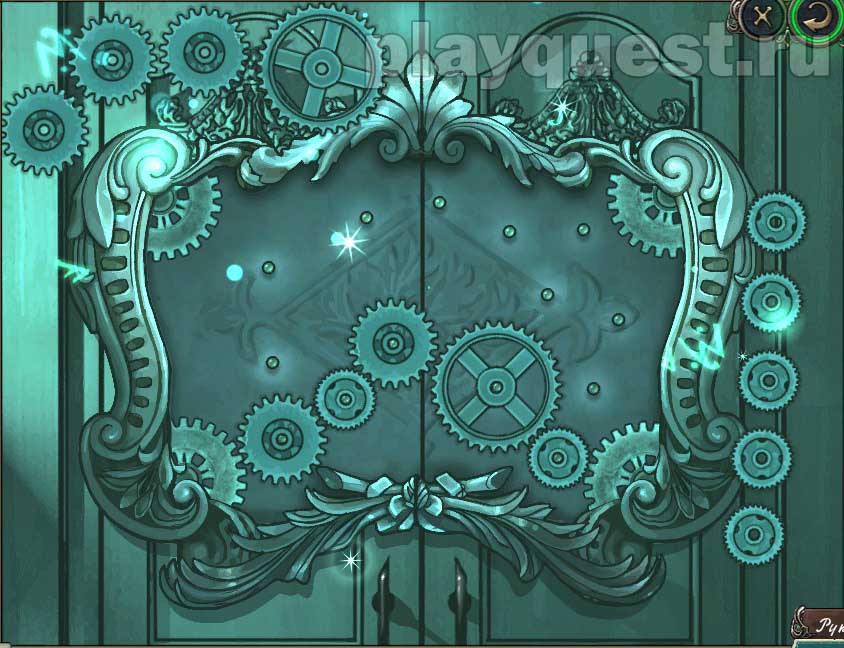 1. Вставляем шестеренки в механизм ближней двери: решаем головоломку