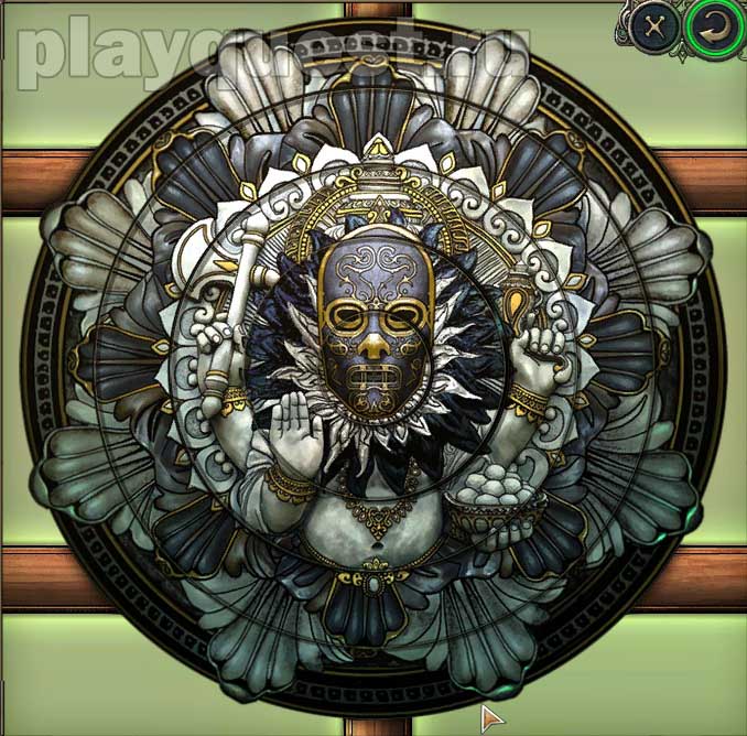 1. Изучаем замок на самой дальней двери: вставляем деталь от замка на место и крутим диски так, чтобы получилось изображение