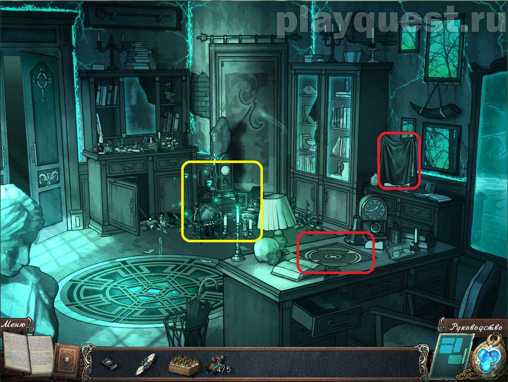 2. Осматриваем вещи у комода: выполняем задание по поиску предметов. Получим книгу - инструкцию по зарядке кристалла
