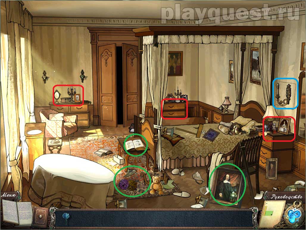 7. После разговора с призраком осматриваем кровать: выполняем задание по поиску (собрать все предметы, связанные со временем). В итоге получим 3-ю подсказку-газету