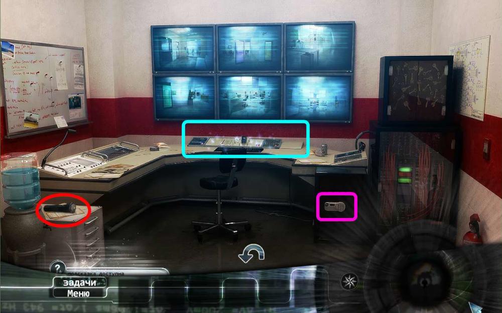 2. Берем план вентиляции из сейфа и фонарик с тумбочки слева.